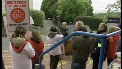 A small gathering of workers gathered outside BBC Llandaff to join the protest.
