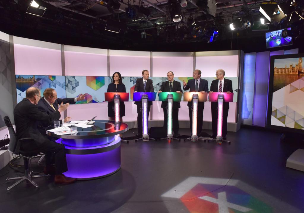 A bit tight in the Daily Politics studio for a five-way debate, but actually looks alright (even though Andrew Neil has to remain sat down):