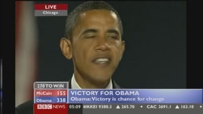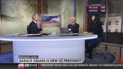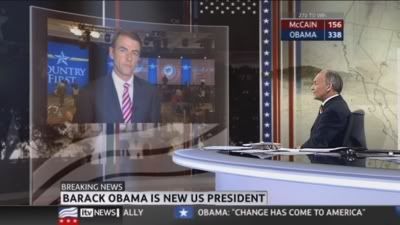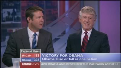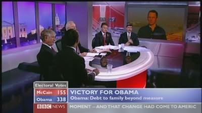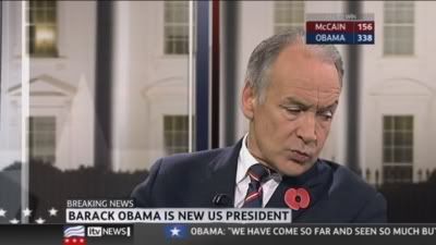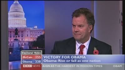 On a similar note, I just remember the 1992 US Election, where Bill Clinton beat George Bush [Senior] and the media briefly touted Clinton as a charasmatic Democrat, quite like Barack. I just thought I share that useless piece of information to you. I think, if I can remember, ITN's Alastair Stewart fronted this on ITV. David Dimbleby on BBC.