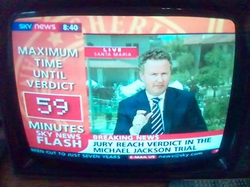 Unbelievable - so the ITV News Channel have admitted they're not good enough, or don't have enough money, to cover it themselves. Can you imagine being the presenter that night? "Well we believe a verdict on Michael Jackson is due, let's hand over to someone who knows what they're talking about."