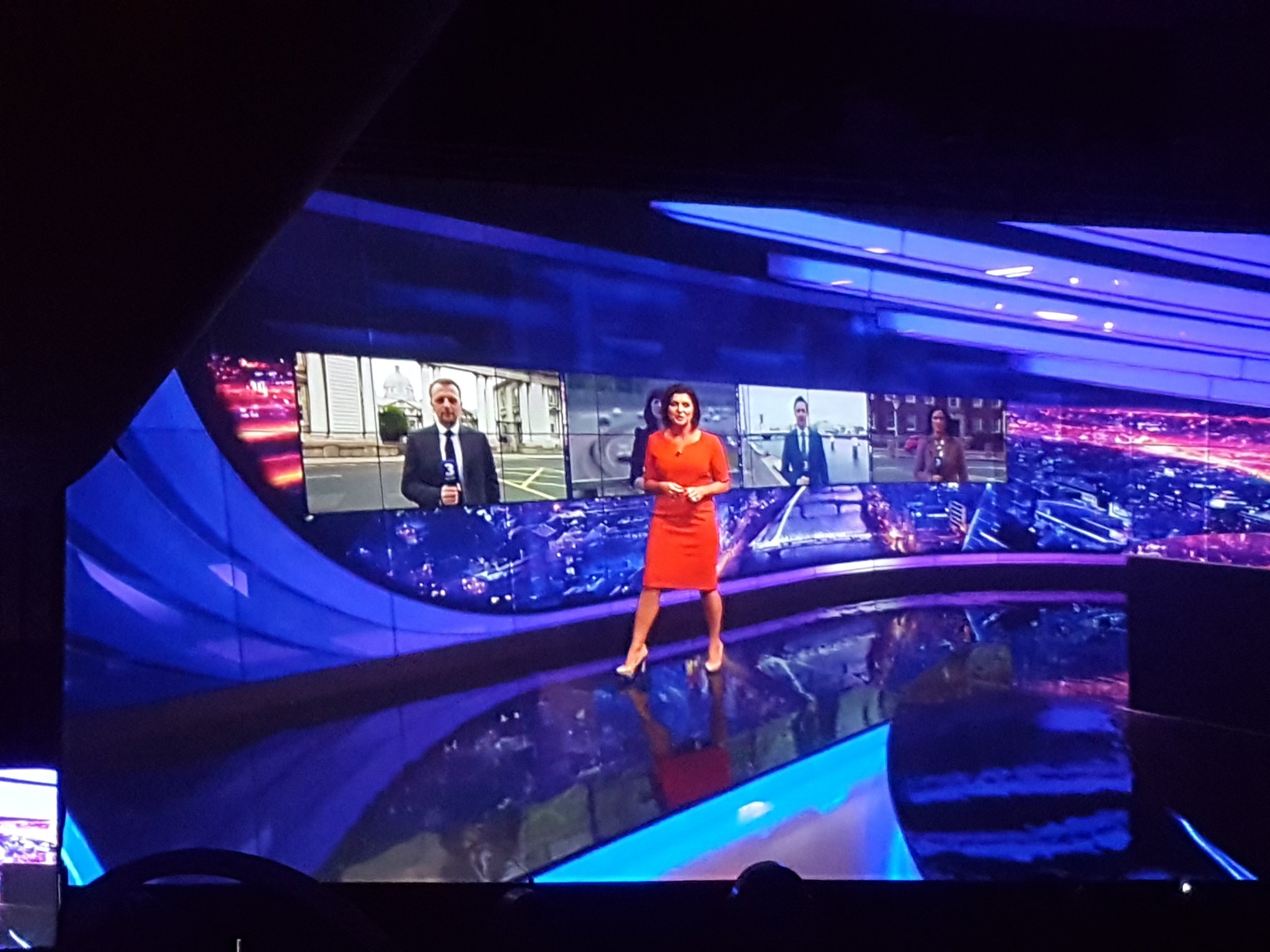 Gone is the old virtual studio which has been pretty much standard for many years on TV3, and they are now in a real studio set, which doesn't look that large, not much more than a corner of a studio. The studio is blue and white on TV3, and dusky pink and white on Be3, which fits in the colour schemes on both channels. There are two presentation points, one at the desk, and a stand up point where the sport is done. There is also a point where a guest can join the main news anchor.