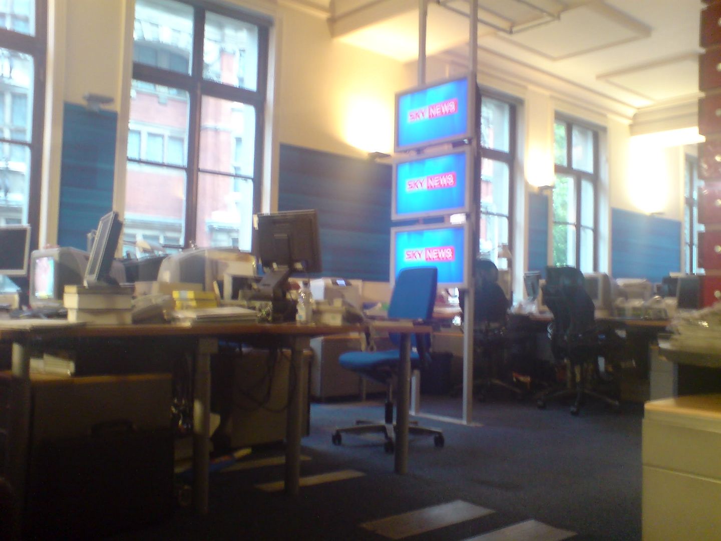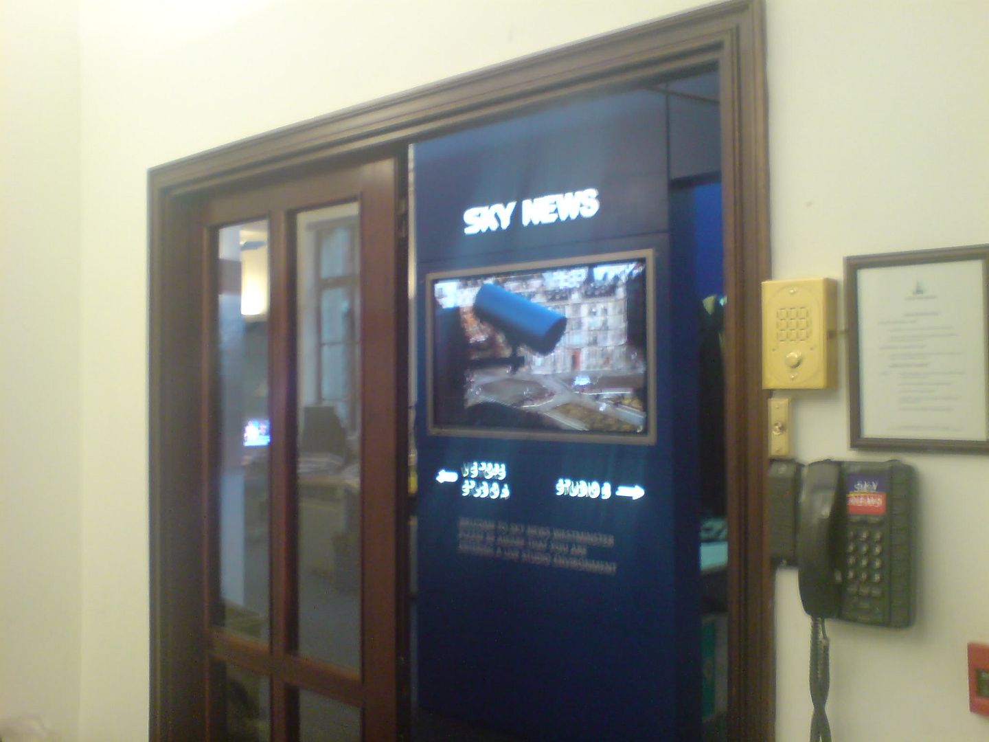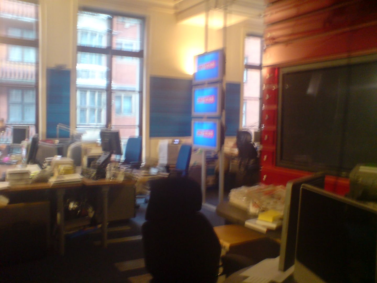 on the coming up around 8:57, in the shot, someone was moving 2 white boards (just right of the newswall) and after the 9.00 headlines, someone was messing by where the desk rails are.