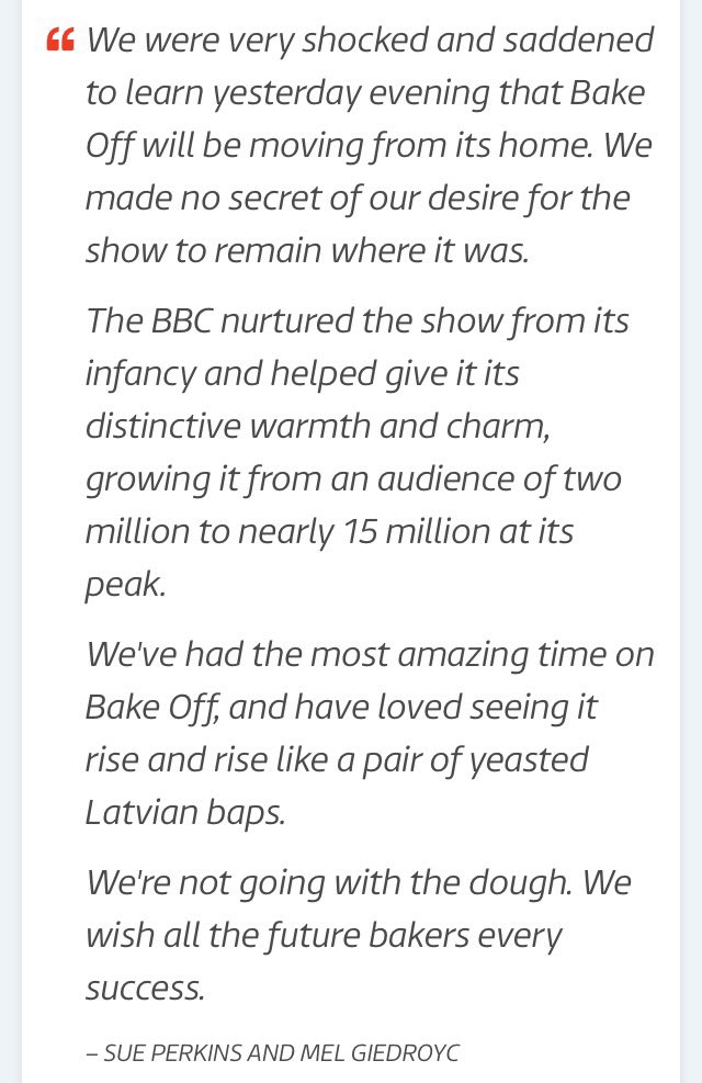 Fair point. I'd say Mary & Paul are very very slightly more critical to the format than Mel & Sue, but you only have to look at the Comic / Sport Relief specials to see how it struggles without them.