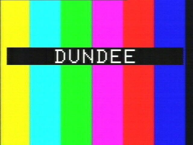 Coloured bars and word 'DUNDEE' being broadcast again on BBC1 from Darvel transmitter.