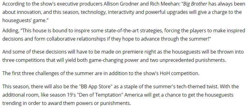 There are some nice elements, but as usual this house was designed by a person in their 60s or older and has no idea what tech or games or anything in the year 2018 means. Also the fact this is 20th Season and the big build up from the Exec Producer, its a huge disappointment. It seems like they get fixated on one thing and have no idea how to carry it out completely. Hence a wall covered in fidget spinners. Who uses those anymore. This twists and the cast I hope make up for Big Brother's lack of imagination.
