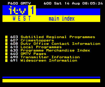 New Years Day 2005 and the regional pages are finally removed, showing this on page 600 instead. From memory this page could still be accessed for a good while, although by the end of the entire service in 2009 it was no longer available.