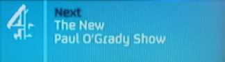 There's a half-screen one which looks to be the same as as the old half-screen one, with the inset picture at the top and the details underneath in a slightly different layout and colour scheme (I suspect it may be used for a multichannel menu at some point, hence the new placement of the C4 logo), and a new strap which is the one pictured above, which now appears at the bottom-right instead of the top-right.