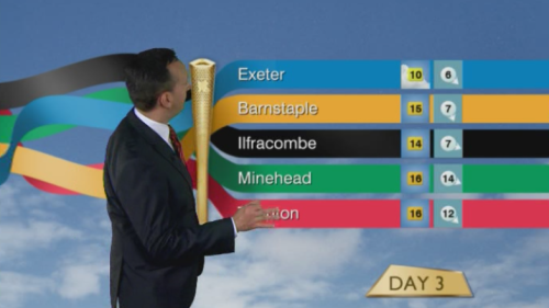 BBC Weather have a nice Olympic themed Torch Relay graphic: